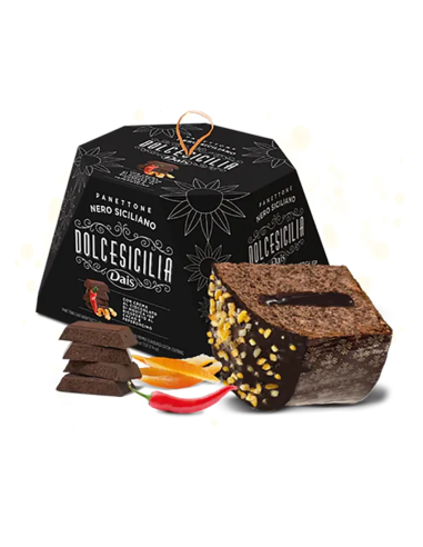 Discover the elegance and intensity of the Panettone with Modica PGI Chocolate Cream and Chili Pepper 800 g, a masterpiece of Sicilian confectionery tradition.